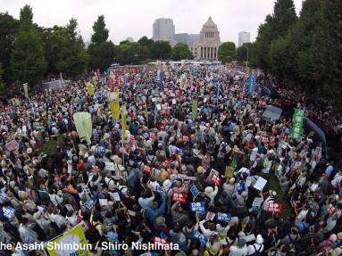 9月14日、45,000人が国会前を埋め尽くし「安倍は退陣!」と怒濤のコール。